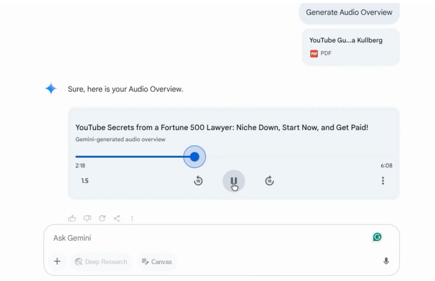 Audio Overview : transforme tes documents en discussions audio avec Gemini